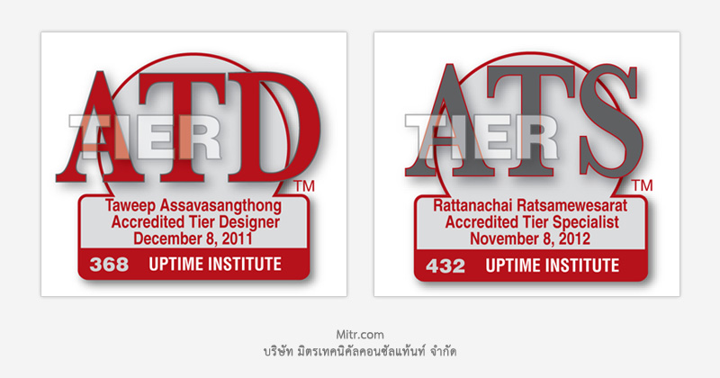 MITR has achieved another standard, ATD (Accredited Tier Designer) and ATS (Accredited Tier Specialist) from Uptime Institute USA to intensify our expertise in engineering services regarding Data Center emerging market.